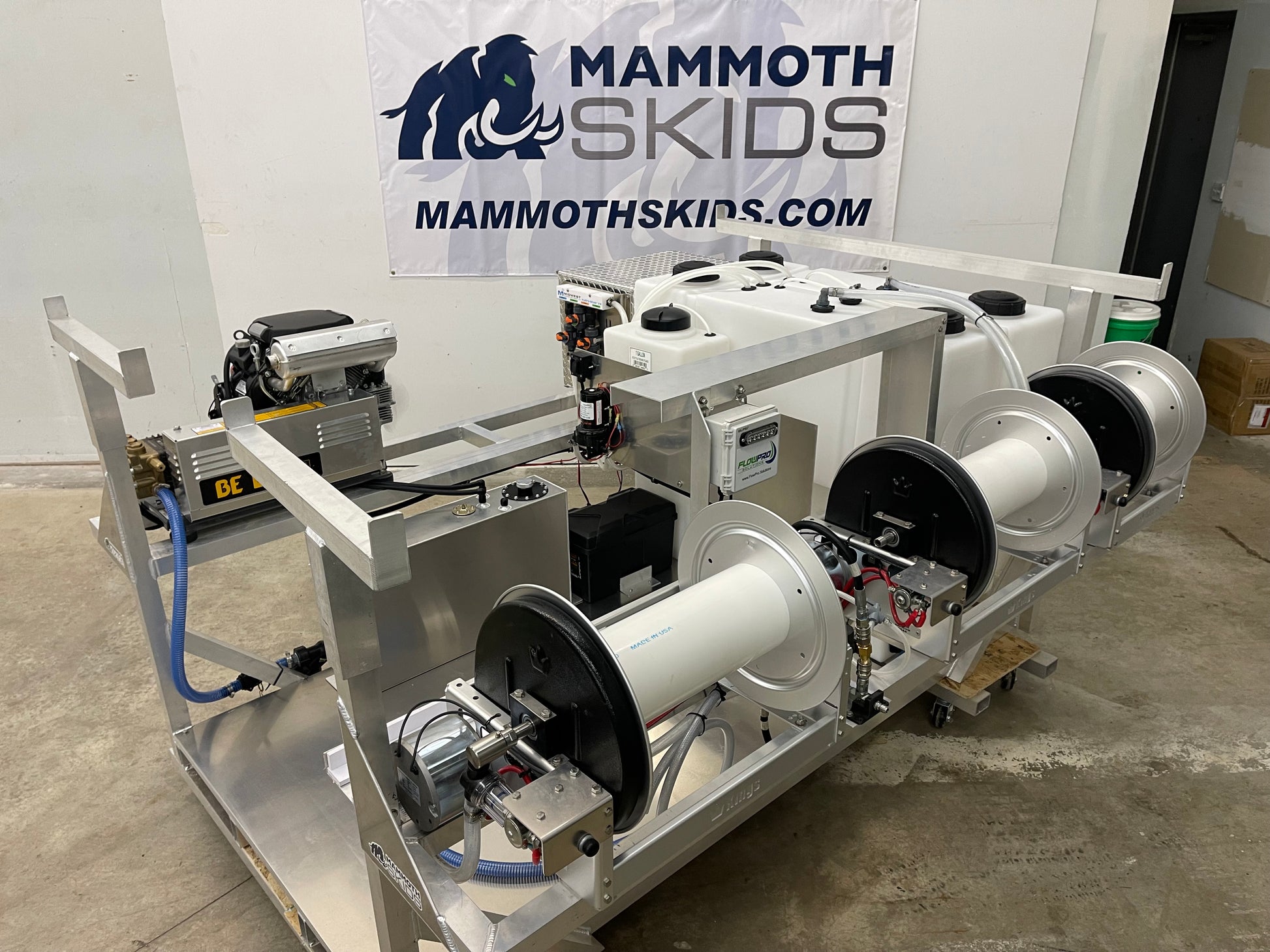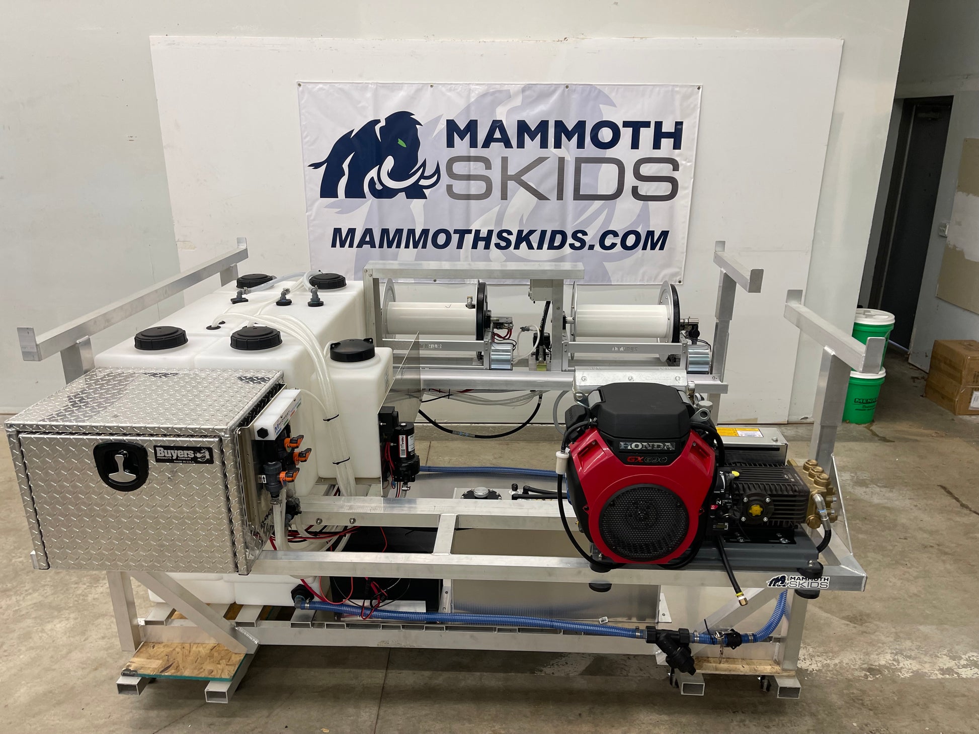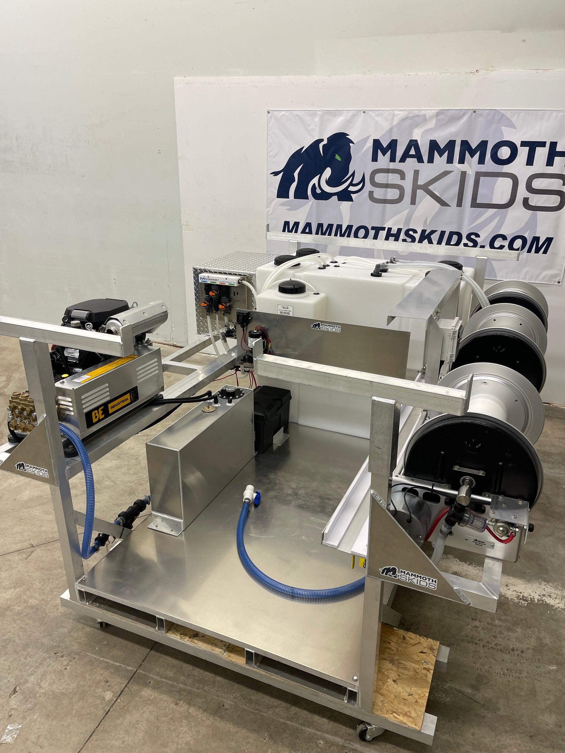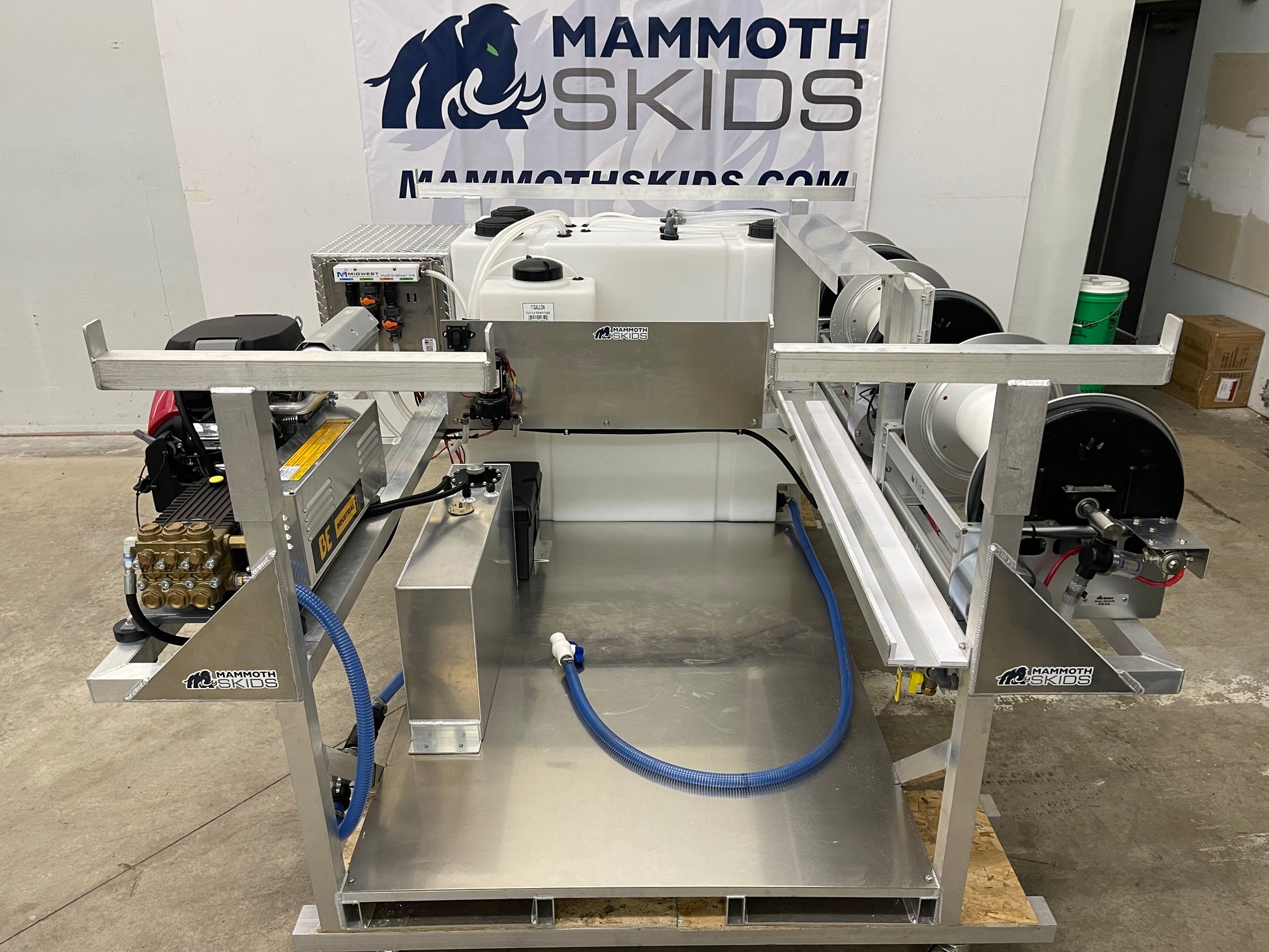 Heavy duty reinforced aluminum welded pressure washing skid. Our Mammoth Skids are Built Tough in the North!